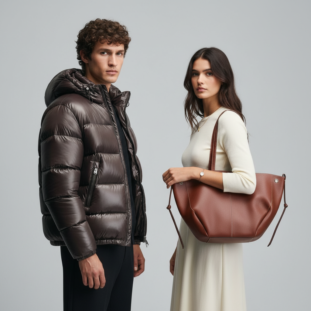 We use high-quality materials, including premium vegan leather and refined fabrics, to ensure comfort, durability, and environmental respect. Our products are designed to offer the luxury look of top brands while being accessible.