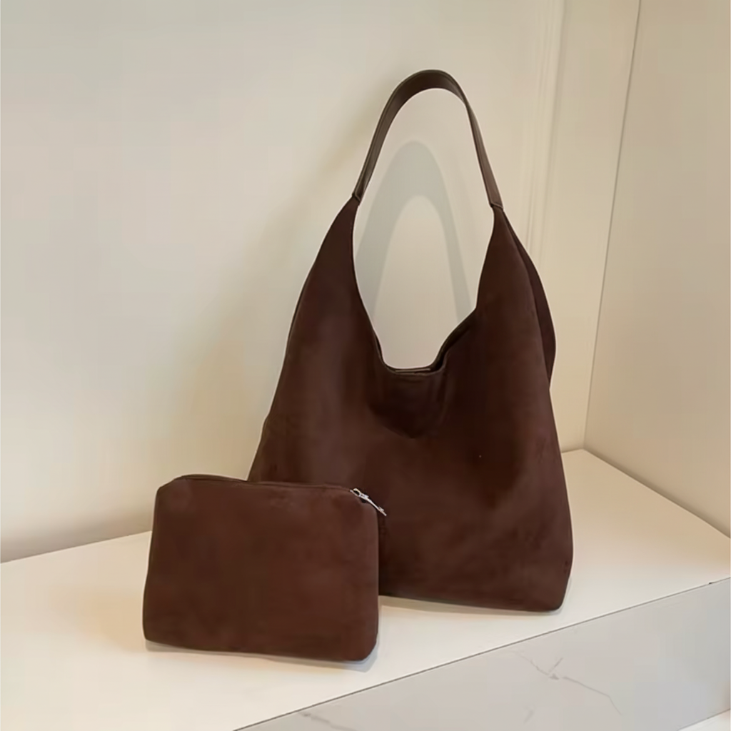 The perfect everyday bag. Spacious, lightweight, and crafted from soft vegan suede, it comfortably fits a 13" MacBook along with all your daily essentials.