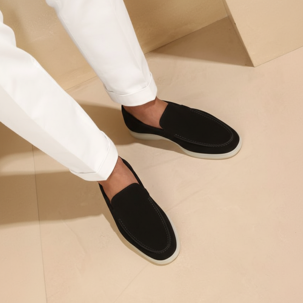 Iconic loafers crafted from ultra-soft vegan suede. Supple and lightweight, they offer exceptional comfort thanks to meticulous craftsmanship and hand-finished details. Inspired by the Old Money aesthetic, they embody refined ease, perfect for summer days, by the sea or in the city.