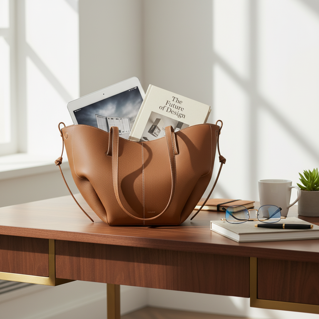 Crafted in premium vegan leather, it can be worn in two ways: as an open, basket-like silhouette with straps on the outside, or as a more rounded, floral-inspired shape with straps crossed inside. Compact and lightweight, it fits your daily essentials while remaining comfortable to carry all day. A classic that elevates any outfit.
