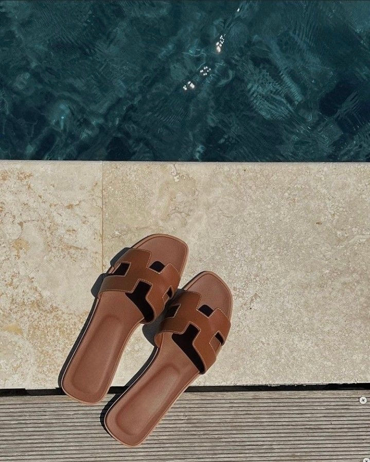 Crafted from smooth vegan leather, the Sandals Venezia feature the iconic “H” cut in a more delicate, feminine silhouette. Sleek and minimalist, they are designed to elevate any summer outfit with quiet sophistication.