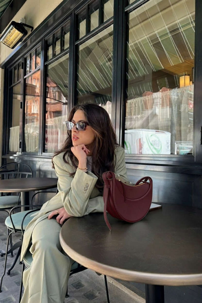 The Shoulder Bag Luna® combines a sculptural half-moon silhouette with hand-stitched details, inspired by equestrian saddlery. Crafted in 100% premium vegan leather and finished with an adjustable strap, it offers timeless elegance and versatile wear from day to night.