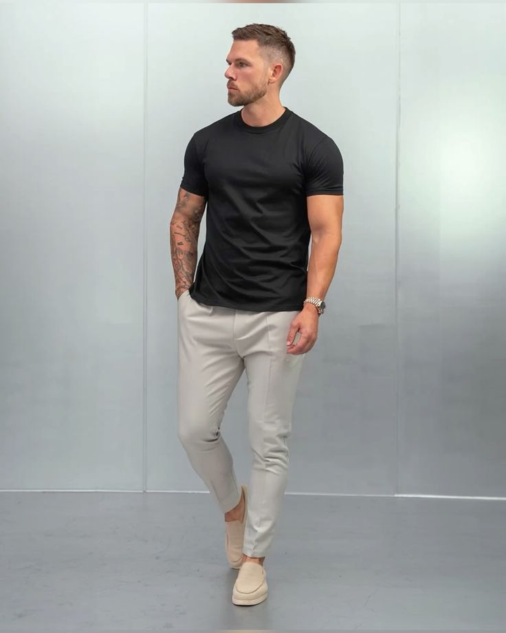 Crafted with premium cotton-blend fabric, the Athens T-Shirt enhances your physique by highlighting your chest, shoulders, and arms while keeping the midsection discreet.